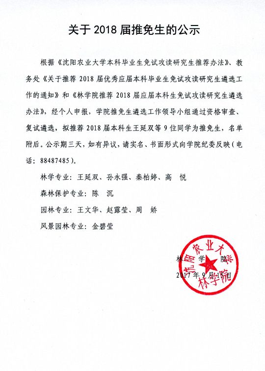 林学院2025级“直接攻博”类研究生申请人排序公示