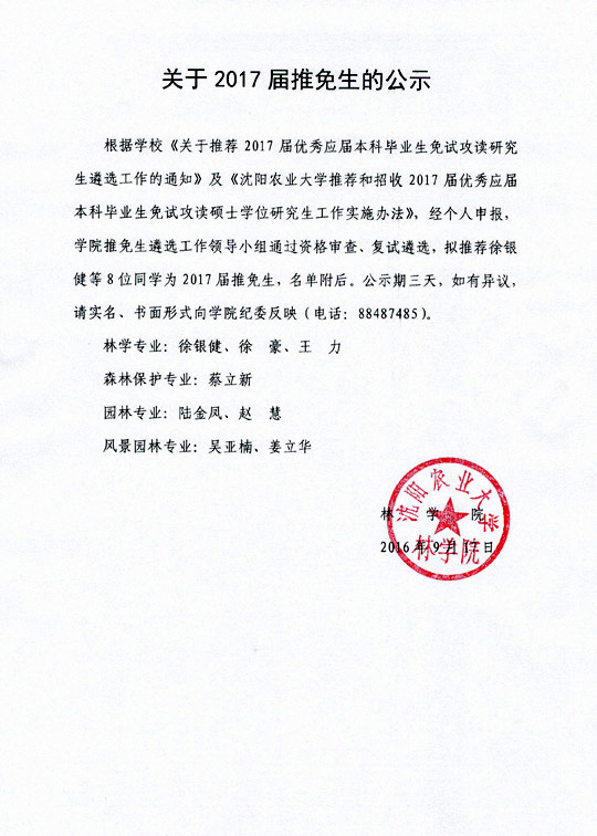 林学院2025级“直接攻博”类研究生申请人排序公示