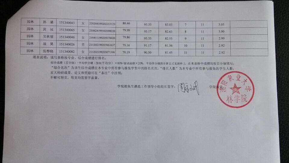 林学院2015年推免面试研究生结果公示
