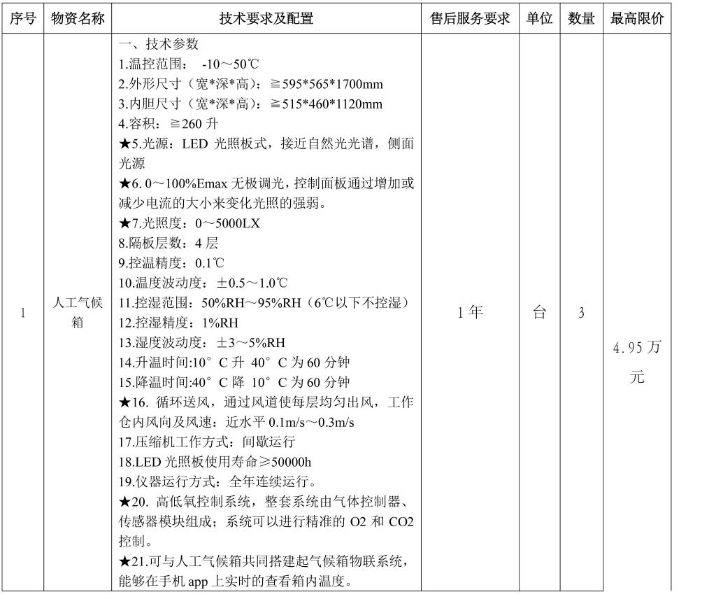 一、项目名称:YABO.COM亚搏人工气候箱询价采购项目