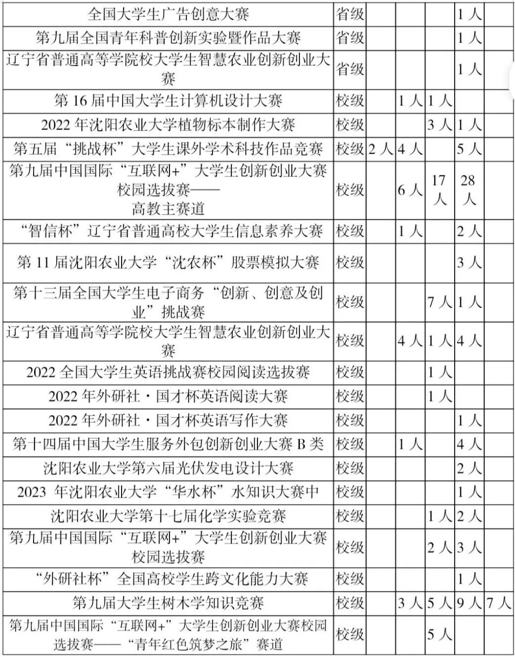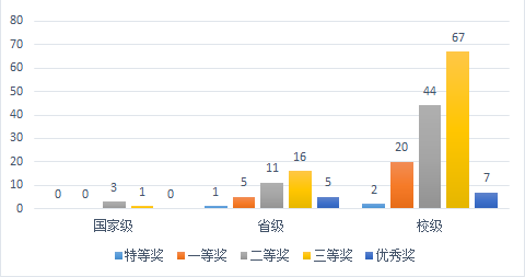 2022-2023学年度,我院学子积极参与各类创新创业竞赛活动,并在其中取得优异成绩。其中在国家级比赛中有4人获奖,省级比赛中有38人获奖,校级比赛中有140人获奖,汇总整理如下。