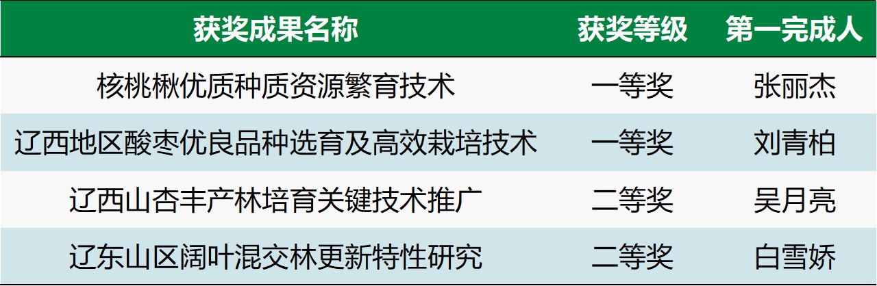 祝贺我院教师荣获5项辽宁省林业科学技术奖