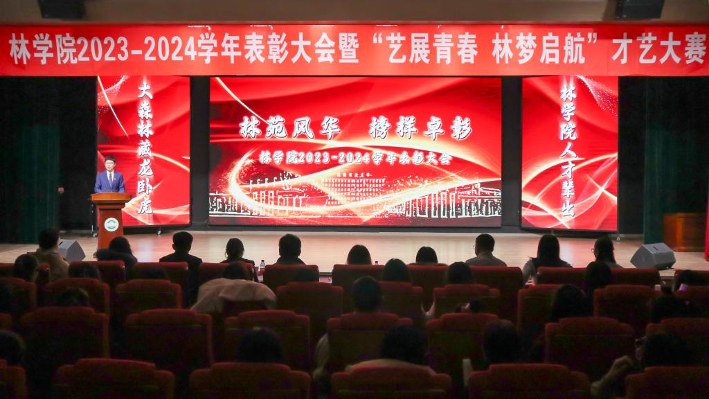 为表彰先进、树立榜样,培养良好的学风和院风,我院评选出“五育建设先进班级”“优秀寝室”“科技创新先进个人”等先进集体和个人,鼓励引导青年向榜样看齐,争做德智体美劳全面发展的合格人才,12月6日,我院2023-2024学年表彰大会暨“艺展青春·林梦启航”才艺大赛于沈阳农业大学学生艺术中心举办。