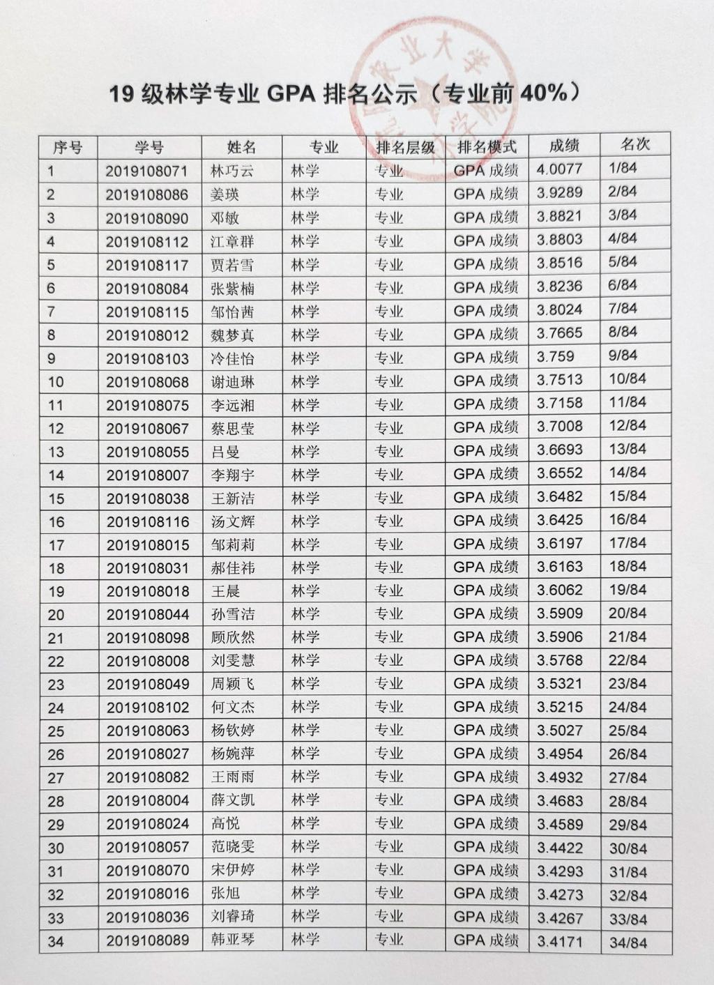 林学院2023年推免工作通知及GPA排名公示